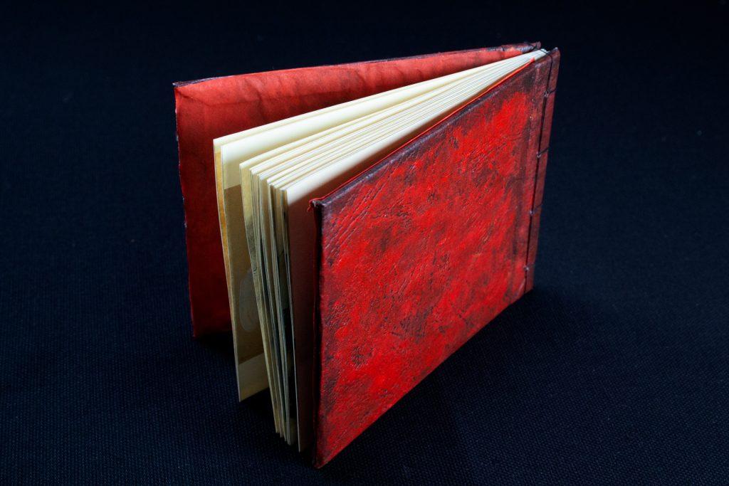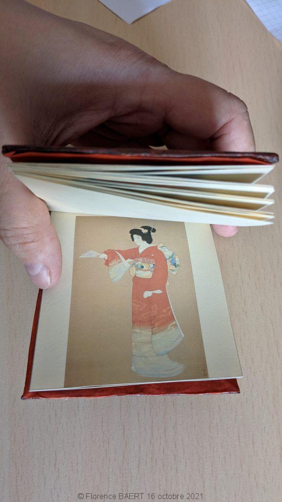 Voici ma version de ce livre pour la poupée Kumiko. J’ai imaginé que les œuvres avaient été reliée « à la japonaise ». J’ai fait une imitation de cuir rouge vieilli.